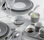 H σειρά Sauvage είναι η απόδειξη για μια ξεχωριστή τεχνική ικανότητα.Ο οίκος Bernardaud με επιτυχία αναπαράγει σε ένα σερβίτσιο πιάτων για το τραπέζι την υφή του δέρματος του ερπετού και ανάγλυφου δέρματος.Το εξαγωνικό μοτίβο παράγεται σε χρώμα γκρι μαργαριτάρι και τονίζεται από μια ωραία ασημένια λωρίδα.