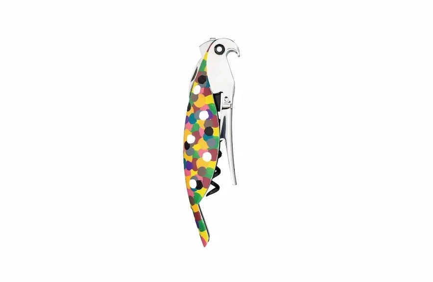 Ένα μικρό αντικείμενο με μεγάλη προσωπικότητα. Το Parrot είναι ένα κομψό, pocket-size ανοιχτήρι κρασιού, σχεδιασμένο από τον Alessandro Mendini. Η χειροποίητη διακόσμηση “Proust – Parrot” χαρίζει έντονο χρώμα και καλλιτεχνικό χαρακτήρα, μετατρέποντας ένα καθημερινό εργαλείο σε συλλεκτικό αντικείμενο. Κατασκευασμένο από χυτό αλουμίνιο και PC, με επίσημη άδεια από την Pulltaps, προσφέρει αξιοπιστία, αντοχή και ευκολία στη χρήση. Ιδανικό τόσο για επαγγελματίες sommeliers όσο και για όσους αγαπούν το κρασί και το σύγχρονο design.