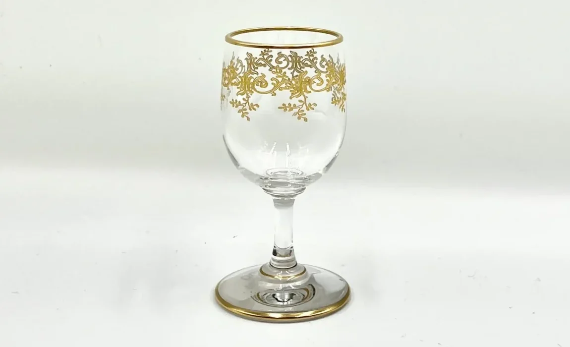 Πλύσιμο μόνο στο χέρι — ποτέ στο πλυντήριο πιάτων, γιατί η υψηλή θερμοκρασία και τα απορρυπαντικά καταστρέφουν το φύλλο χρυσού και θαμπώνουν το κρύσταλλο.
