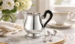 Επάργυρη γαλατιέρα Malmaison με λαβή από έβενο, που προσθέτει κομψότητα σε κάθε σερβίρισμα. Το ιστορικό σχέδιο της σειράς, εμπνευσμένο από το Empire style, διακρίνεται από λεπτοδουλεμένα μοτίβα φοίνικα και λωτού.