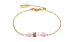 Απολαύστε την απλή κομψότητα του βραχιολιού Mini Cubes & Chain σε χρυσό-ροζ, ένα σοφιστικέ κόσμημα που μαγεύει με το ντελικάτο του σχέδιο και τη μοναδική γοητεία των υλικών. Αυτό το βραχιόλι συνδυάζει την διαχρονική ομορφιά των κύβων από ορεινό κρύσταλλο με τη λαμπερή αστραφτερή λάμψη των κρυστάλλων Swarovski. Το καινοτόμο συρόμενο κούμπωμα εξασφαλίζει μια προσαρμοσμένη εφαρμογή, επιτρέποντάς σας να ρυθμίσετε το μήκος του βραχιολιού όπως επιθυμείτε, εξασφαλίζοντας βέλτιστη άνεση.