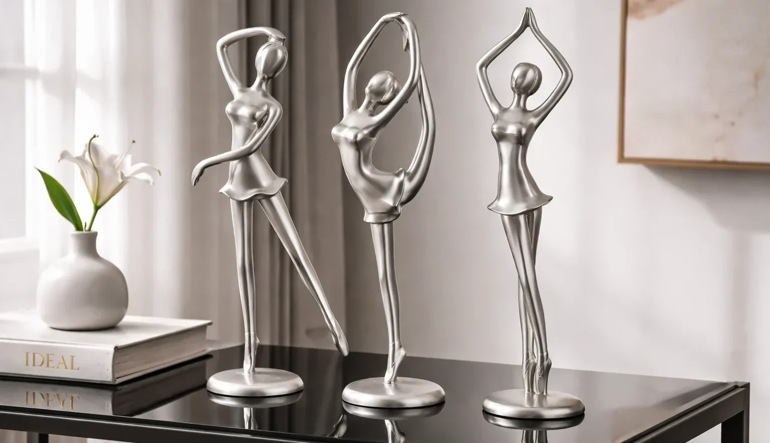 Μια φινετσάτη φιγούρα που αποτυπώνει την κομψότητα και τη χάρη μιας μπαλαρίνας σε στάση χορού. Η μεταλλική της όψη, αν και κατασκευασμένη από συνθετική ρητίνη, της χαρίζει μια μοντέρνα και διαχρονική αισθητική. Ιδανική πρόταση για λάτρεις της τέχνης, του χορού ή της εκλεπτυσμένης διακόσμησης.