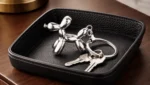 Μοντέρνο μπρελόκ σε σχήμα σκύλου τύπου “Balloon”, κατασκευασμένο από μέταλλο με γυαλιστερή ασημί απόχρωση. Ένα πρωτότυπο και κομψό αξεσουάρ που συνδυάζει χιούμορ, στυλ και πρακτικότητα, ιδανικό για κλειδιά.